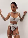 O Conjunto Yasmin é a união perfeita entre elegância e sensualidade. Confeccionado em renda delicada com recortes estratégicos e transparência sutil, realça as curvas com harmonia e sofisticação.